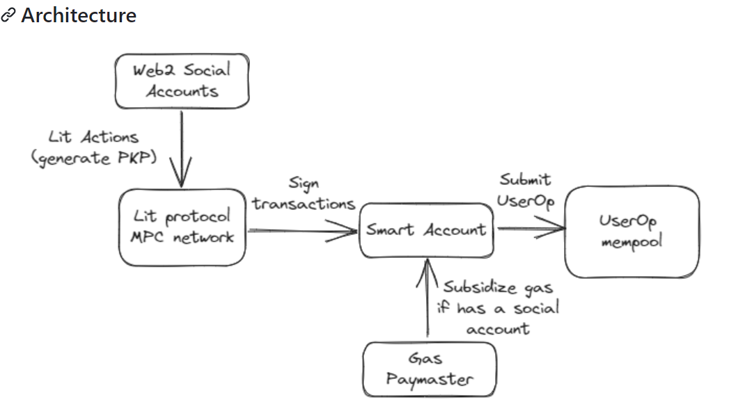 Next, we have Keyless Accounts, a project that tackles the steep learning curve associated with dApps. Keyless Accounts mitigates the need for browser extensions and account funding, significantly lowering the barrier to entry for new users. It leverages the Lit protocol threshold network for key storage and offers in-browser smart contract account creation using social logins.