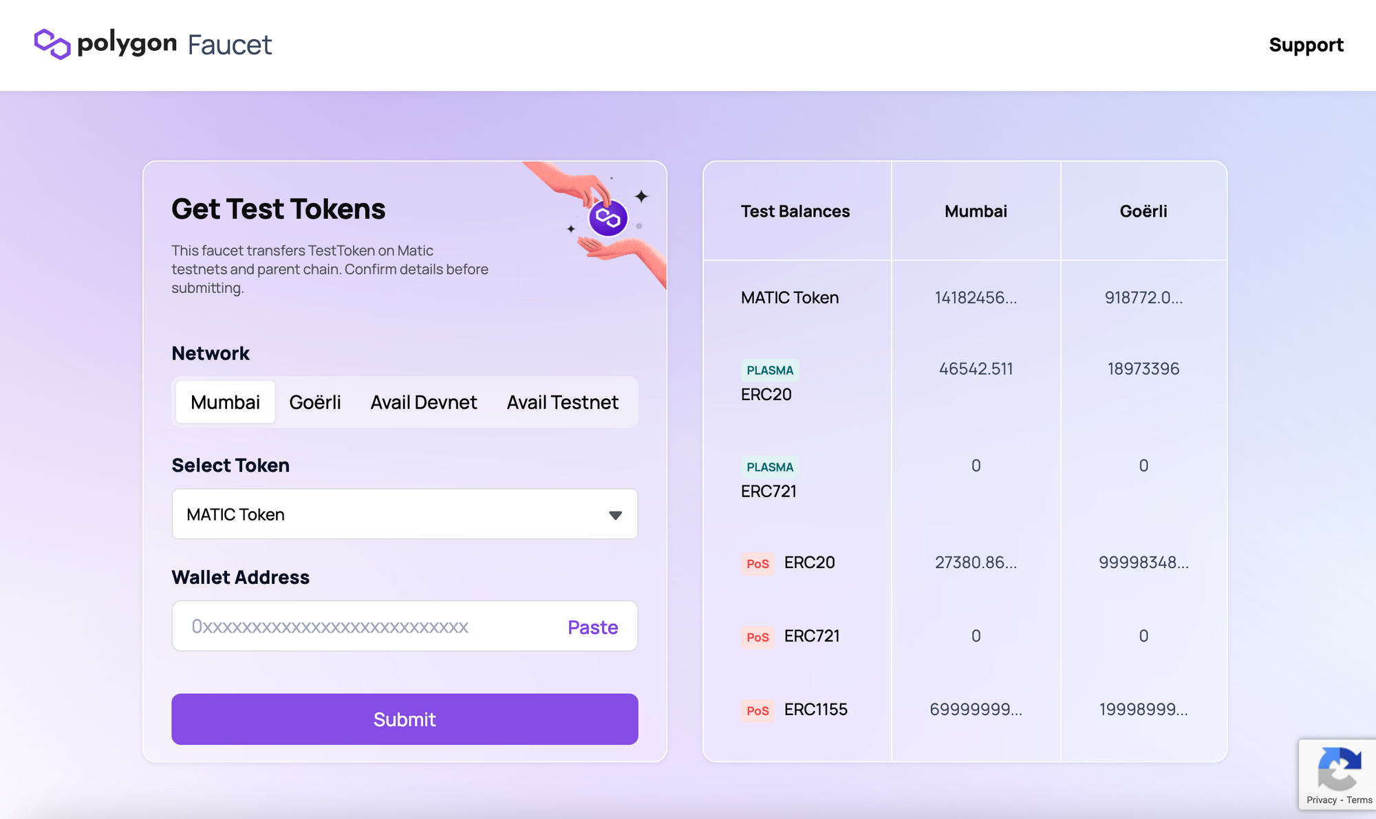 Follow the instructions on the faucet homepage to receive MATIC. Make sure to include your Ethereum address (from Metamask or another wallet) and not another network. After following the instructions, double check that you’ve received the MATIC in your wallet.
