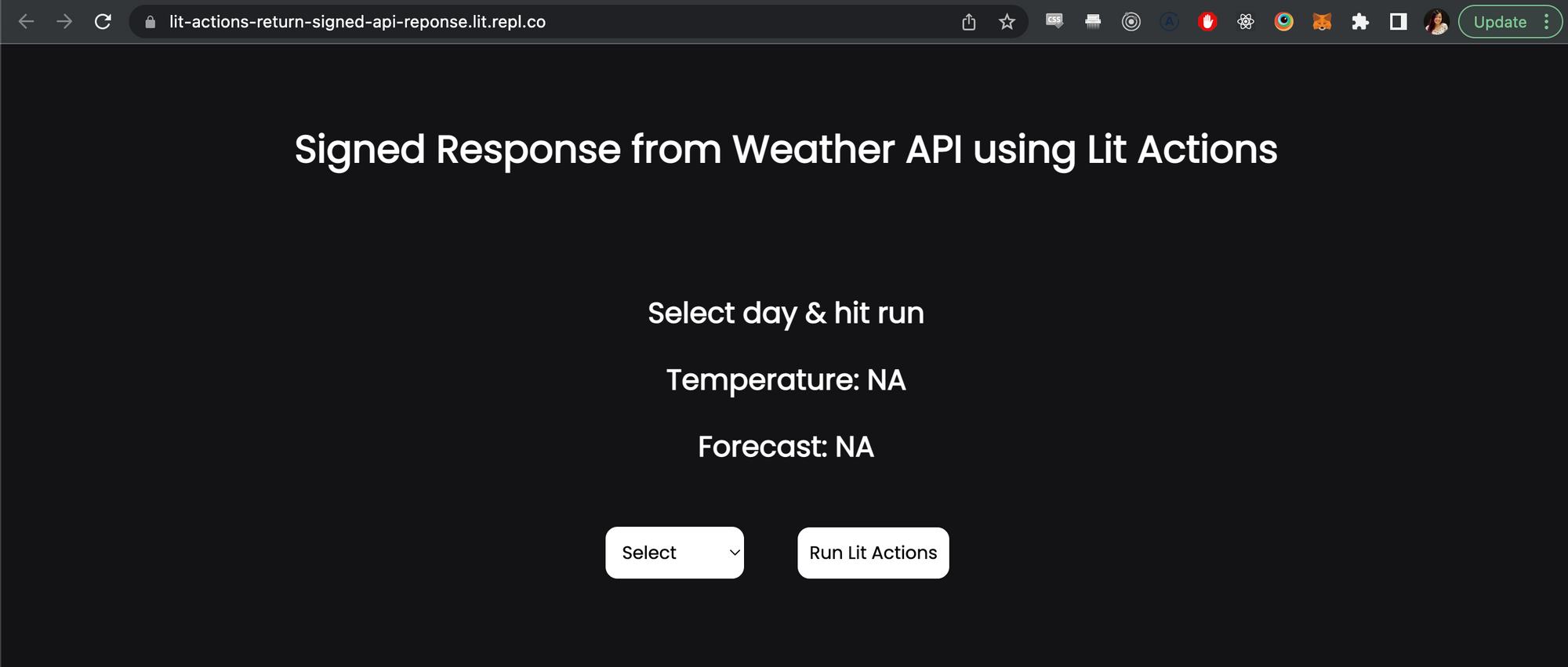 <h1>Signed Response from Weather API using Lit Actions</h1>